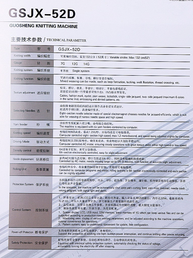 GSJX-52D单系统(镶片)型电脑横机